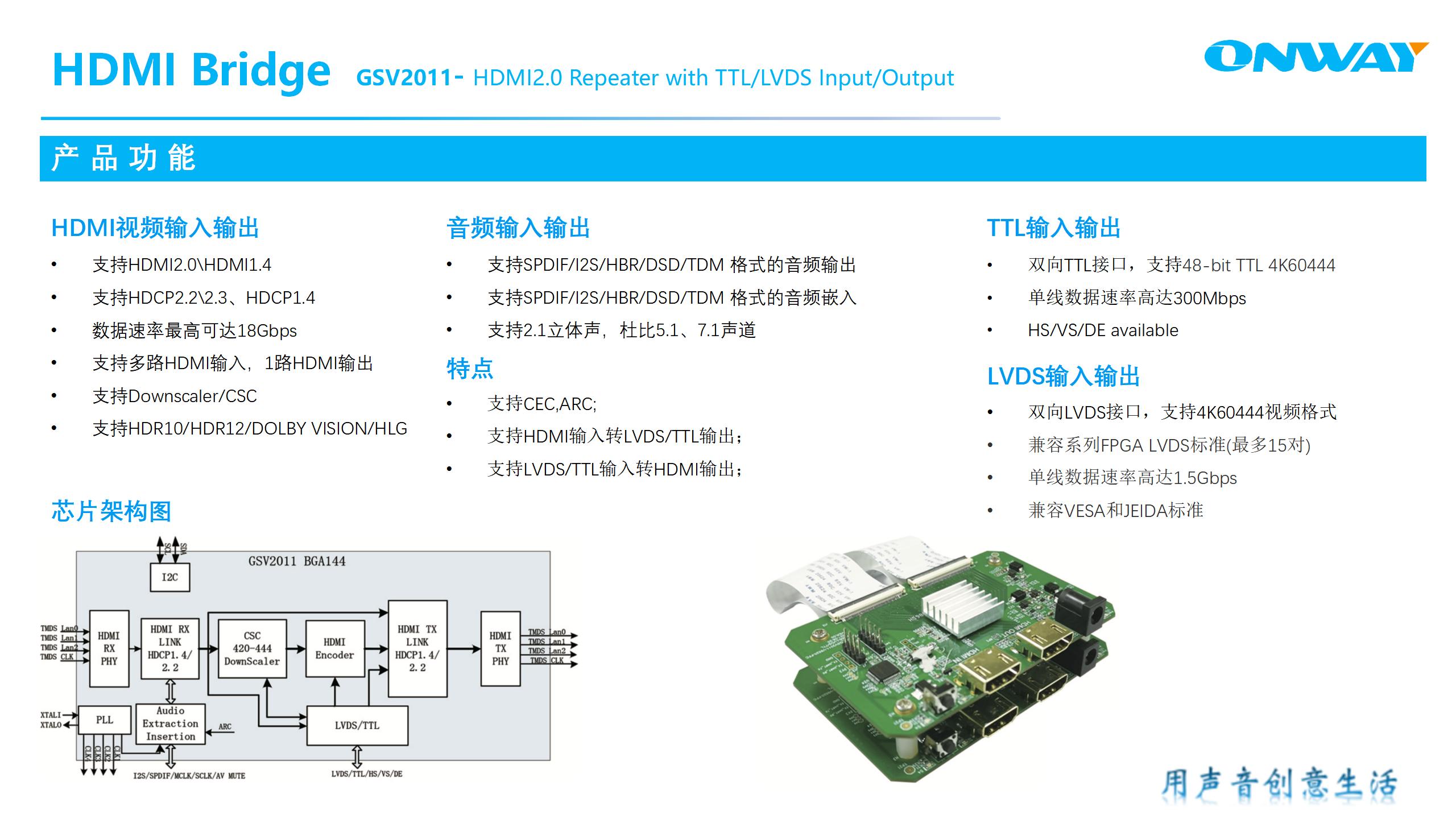 HDMI Bridge GSV2011- HDMI2.0 Repeater with TTL/LVDS Input/Output