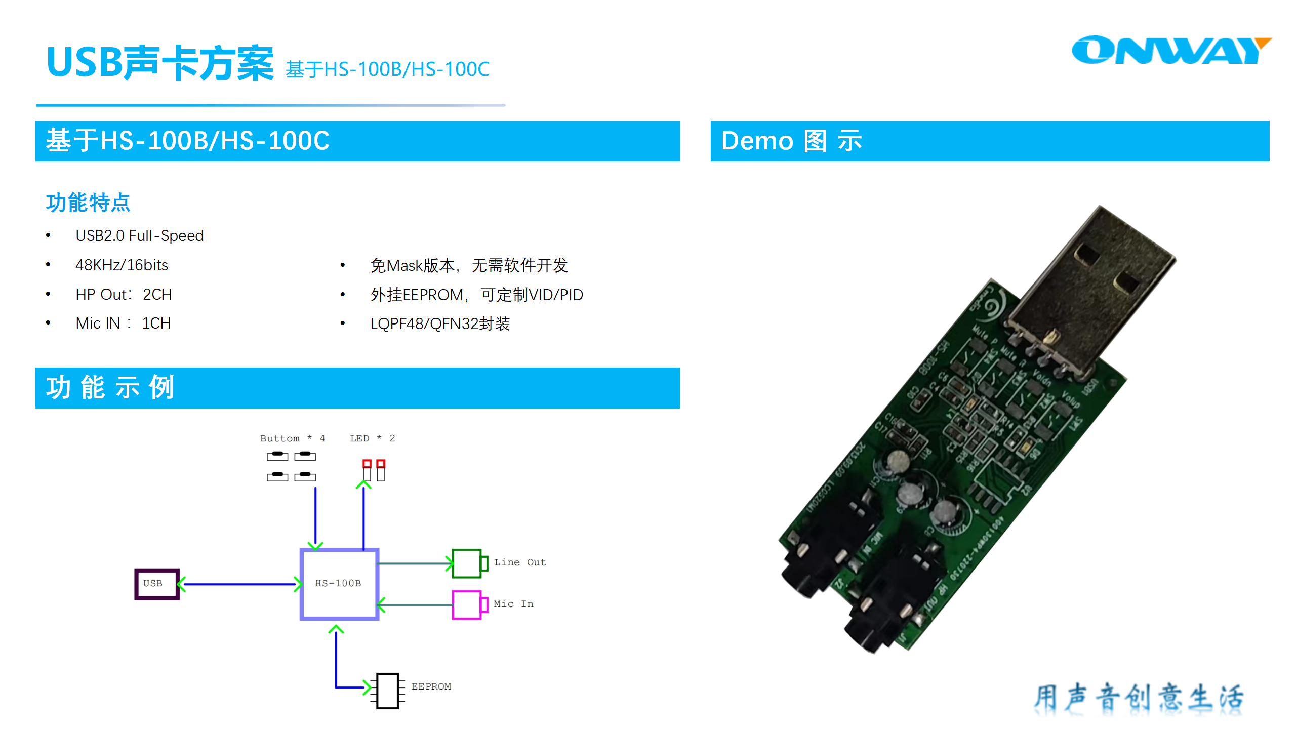 HS-100B/C是一種高度集成、無需晶振的USB音頻單芯片解決方案,通常針對USB耳機(jī)、頭戴式耳機(jī)、USB聲卡等應(yīng)用