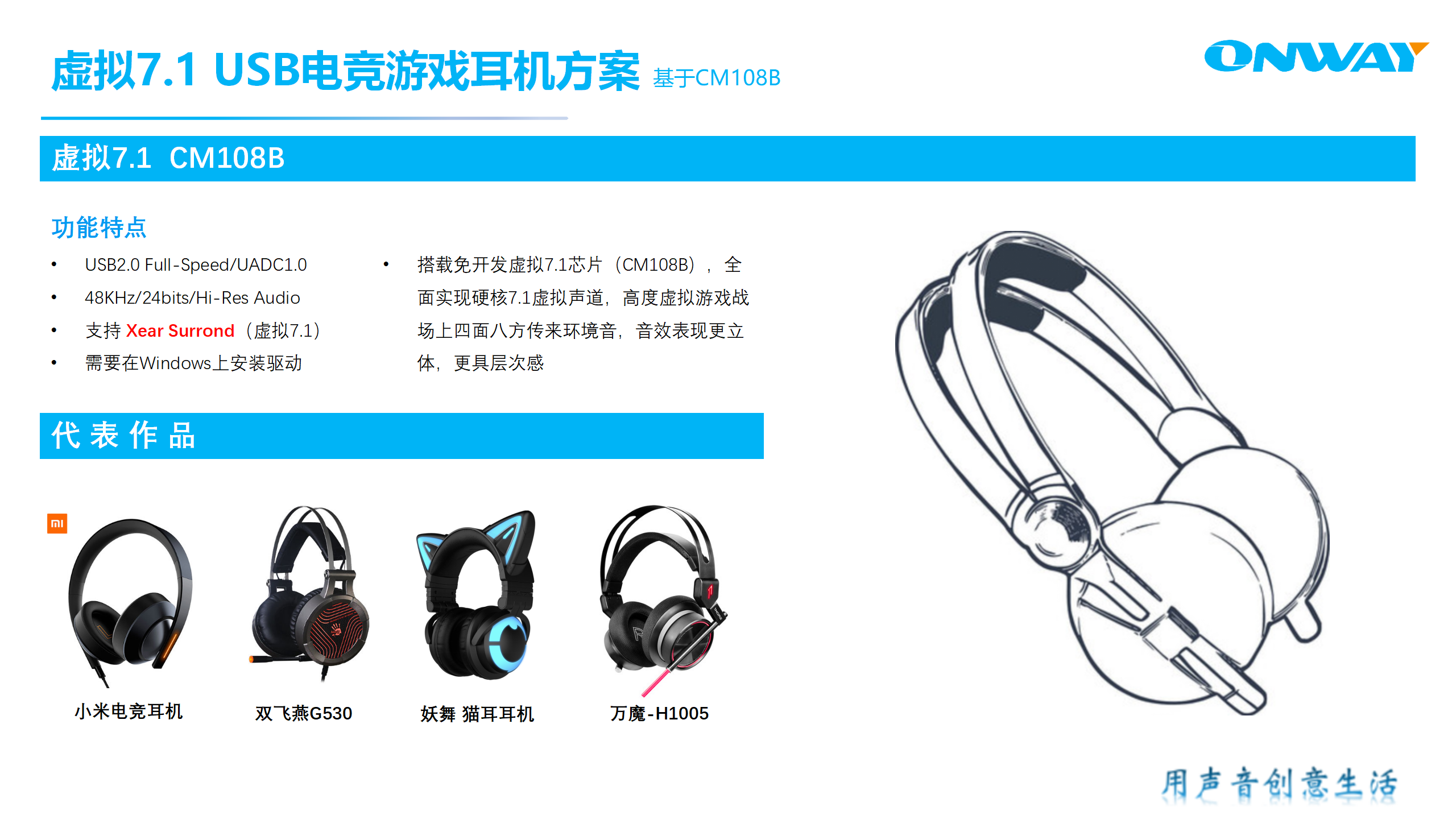 代表作品:小米電競耳機(jī),雙飛燕G530,妖舞貓耳耳機(jī),萬魔-H1005,聯(lián)想-H500
