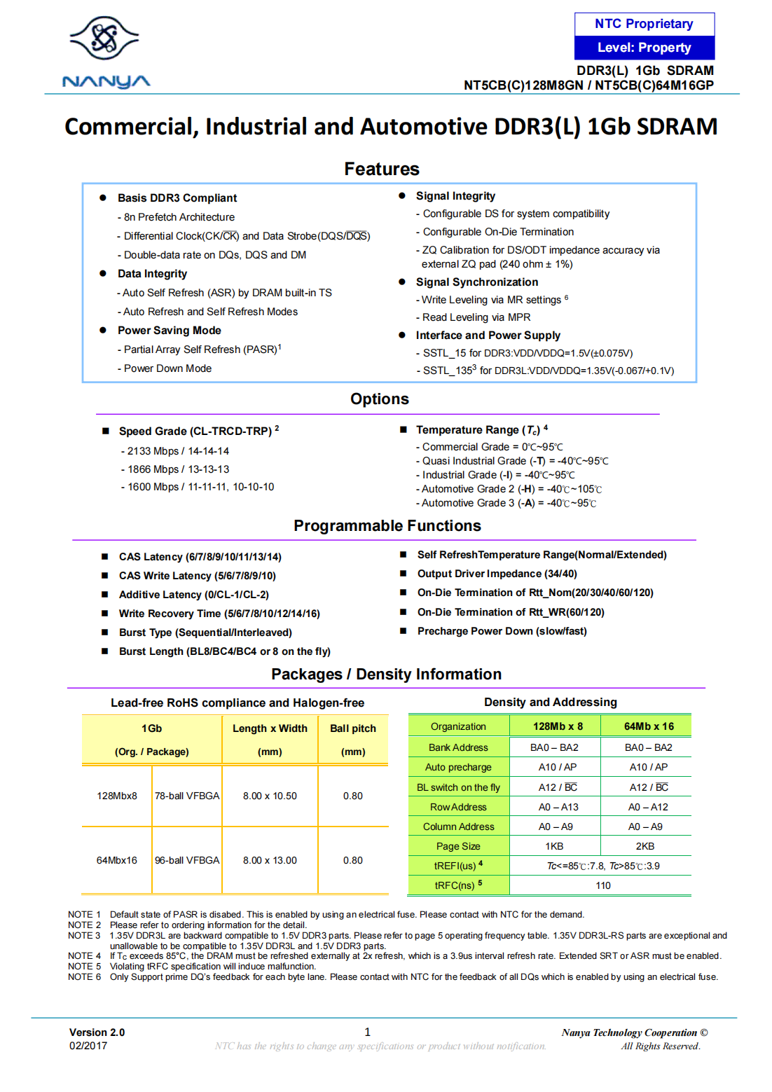 NT5CB64M16GP-EK_DDR3(L) 1Gb SDRAM