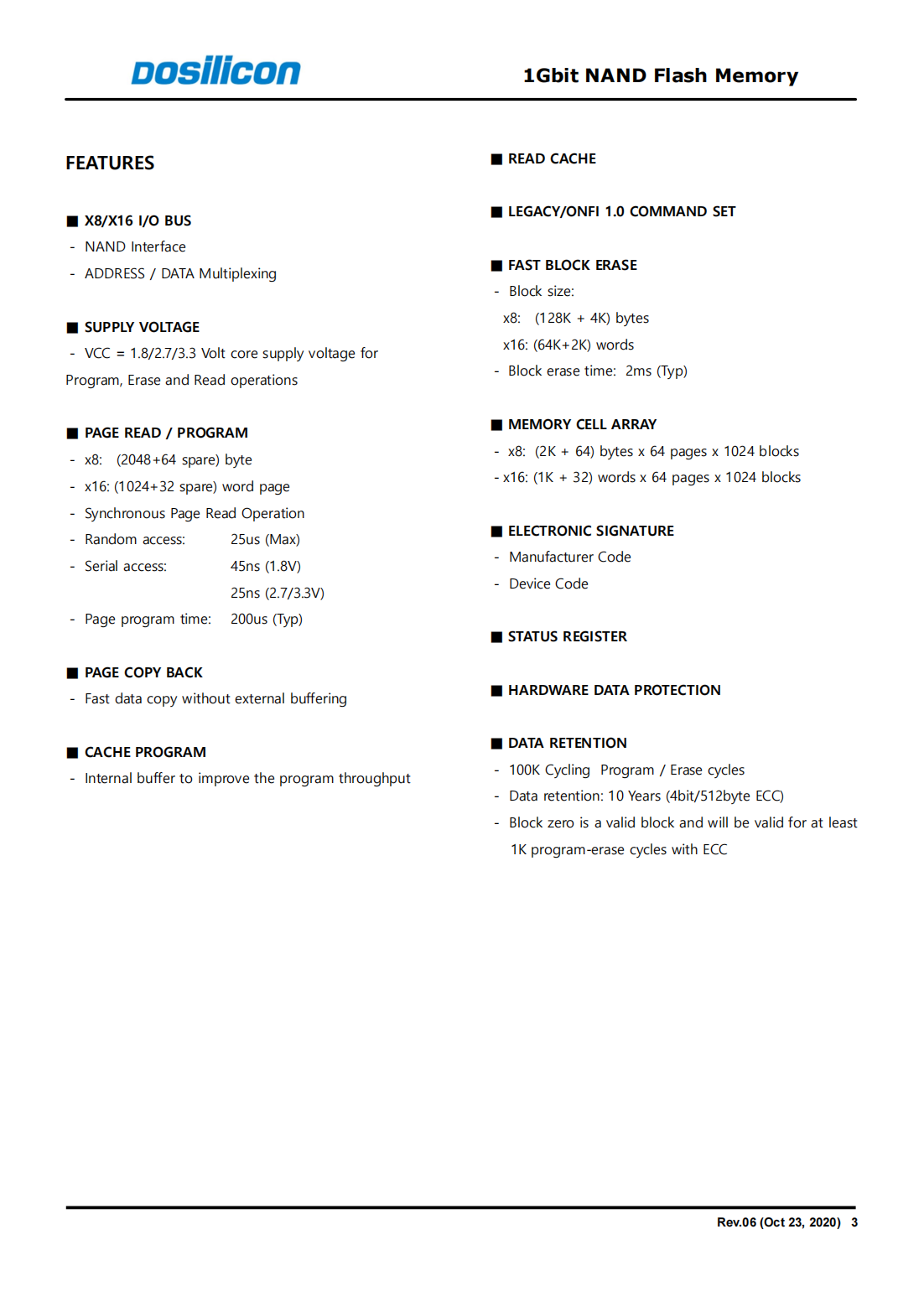 FMND1GXXXXX is a 128Mx8bit with spare 4Mx8(x8),64Mx16bit with spare 2Mx16(x16)bit capacity.The device is offered in 3.3/1.8 Vcc Power Supply,and with x8 and x16 I/O interface.The memory is divided into blocks that can be erased independently so it is possible to preserve valid data while old data is erased.