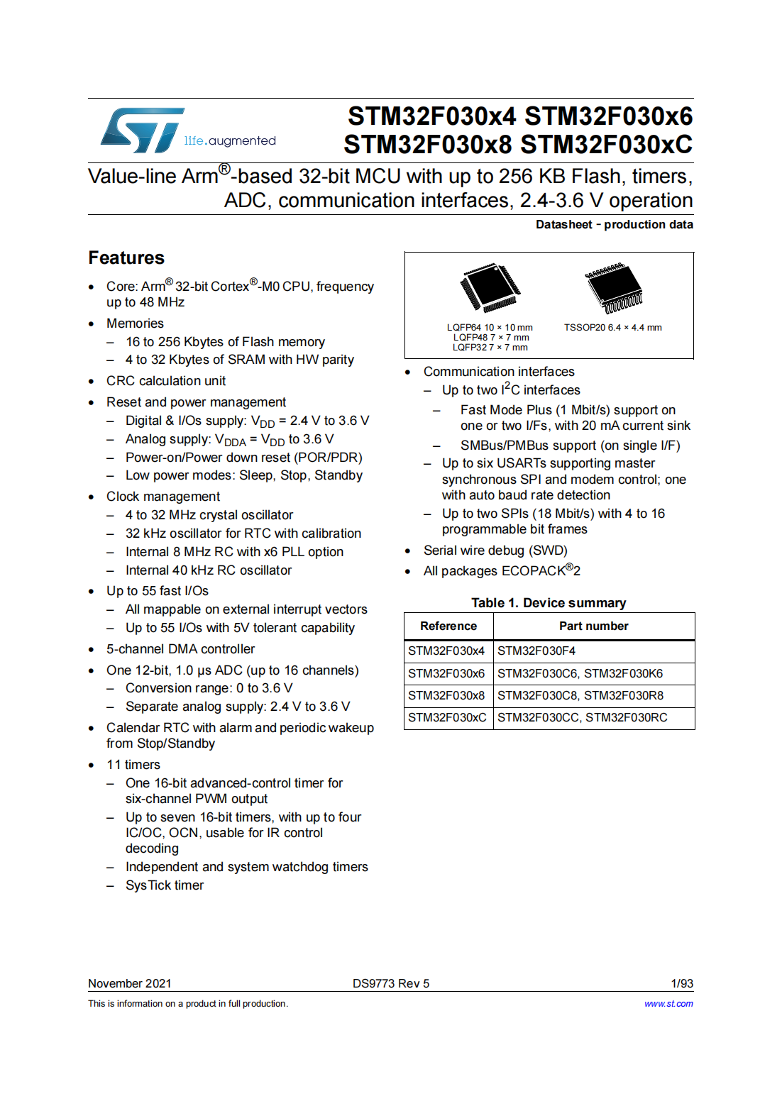 ?Core:Arm®32-bit Cortex®-M0 CPU,frequency up to 48 MHz