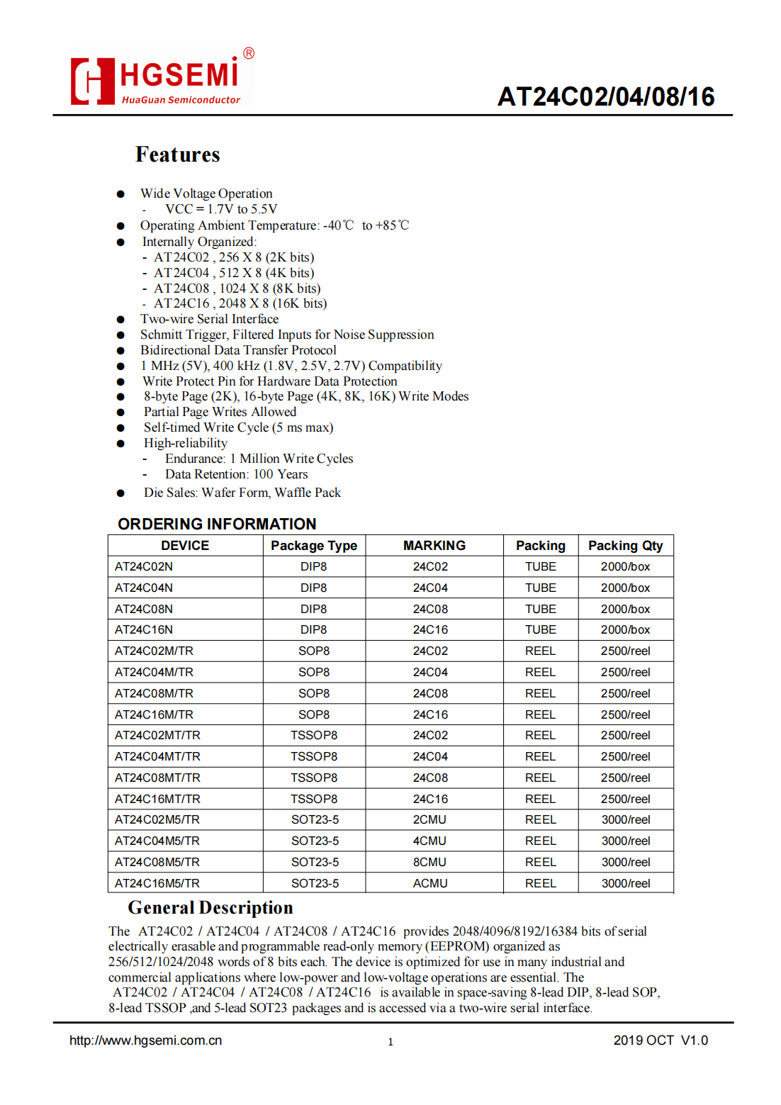 ●1 MHz(5V),400 kHz(1.8V,2.5V,2.7V)Compatibility