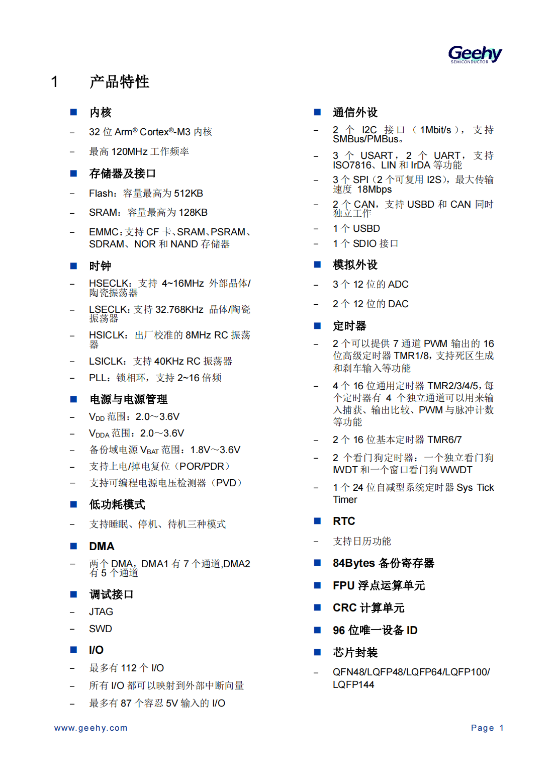 2個可以提供7通道PWM輸出的16位高級定時器TMR1/8,支持死區(qū)生成和剎車輸入等功能