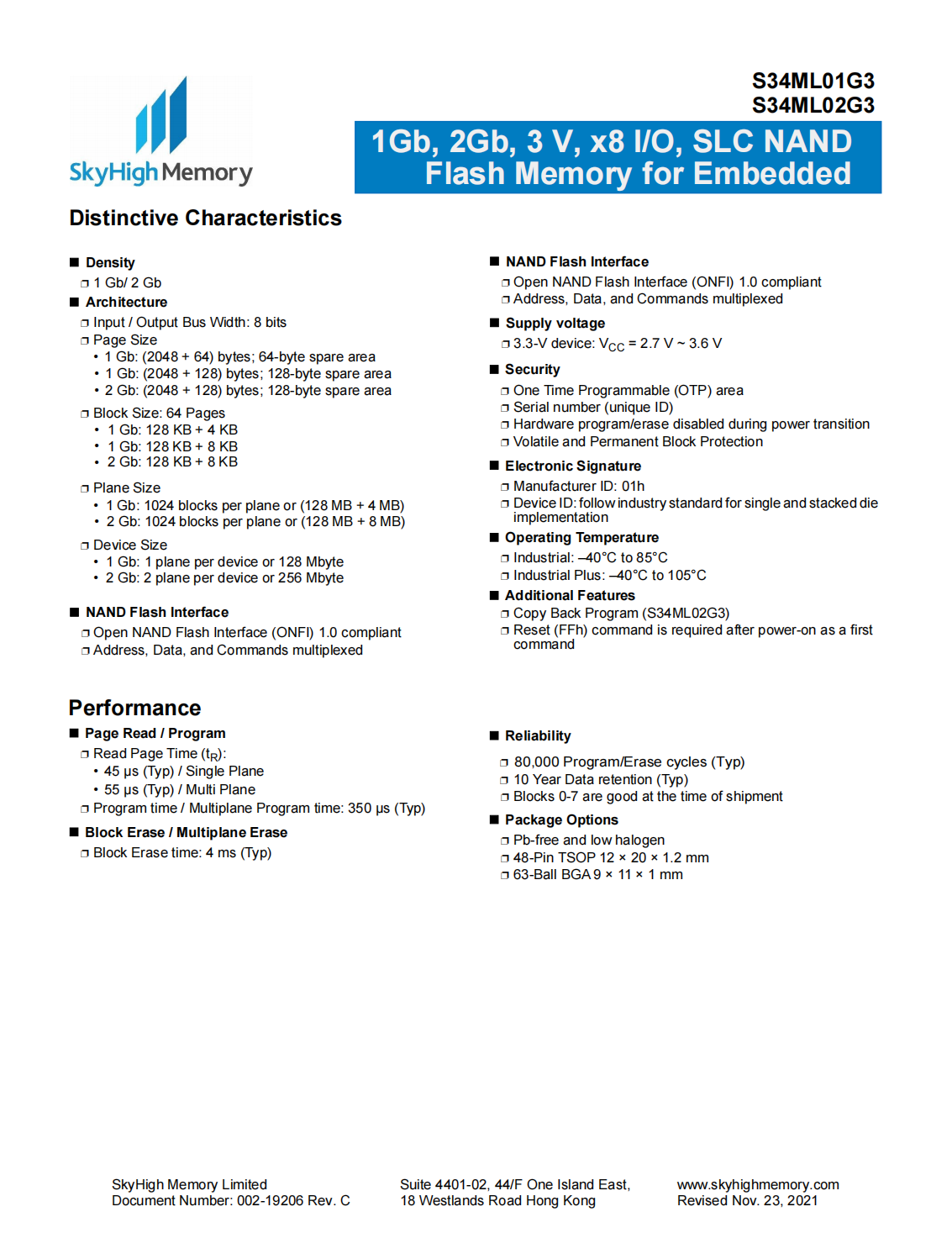 ?Open NAND Flash Interface(ONFI)1.0 compliant
