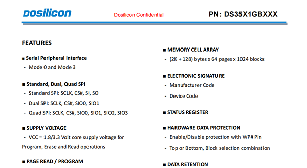The device is offered in 3.3/1.8 Vcc Power Supply,and with SPI interface.The memory is divided into blocks that can be erased independently so it is possible to preserve valid data while old data is erased.