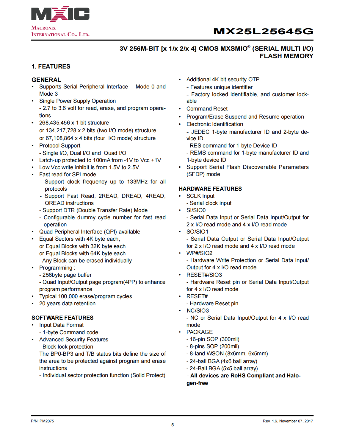 MX25L25645G is 256Mb bits Serial NOR Flash memory,which is configured as 33,554,432 x 8 internally.When it is in two or four I/O mode,the structure becomes 134,217,728 bits x 2 or 67,108,864 bits x 4.