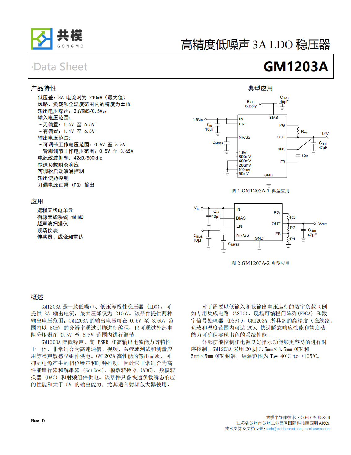 對于需要以低輸入和低輸出電壓運行的數(shù)字負(fù)載(例如專用集成電路(ASIC)、現(xiàn)場可編程門陣列(FPGA)和數(shù)字信號處理器(DSP)),GM1203A所具備的高精度(在線路、負(fù)載和溫度范圍內(nèi)可達(dá)1%)、快速瞬態(tài)響應(yīng)性能和軟啟動能力可確保實現(xiàn)出色的系統(tǒng)性能。外部使能控制和電源良好指示功能夠更容易的進(jìn)行時序控制。GM1203A采用20腳3.5mm×3.5mm QFN和5mm×5mm QFN封裝,結(jié)溫范圍為TJ=-40°C to+125°C。