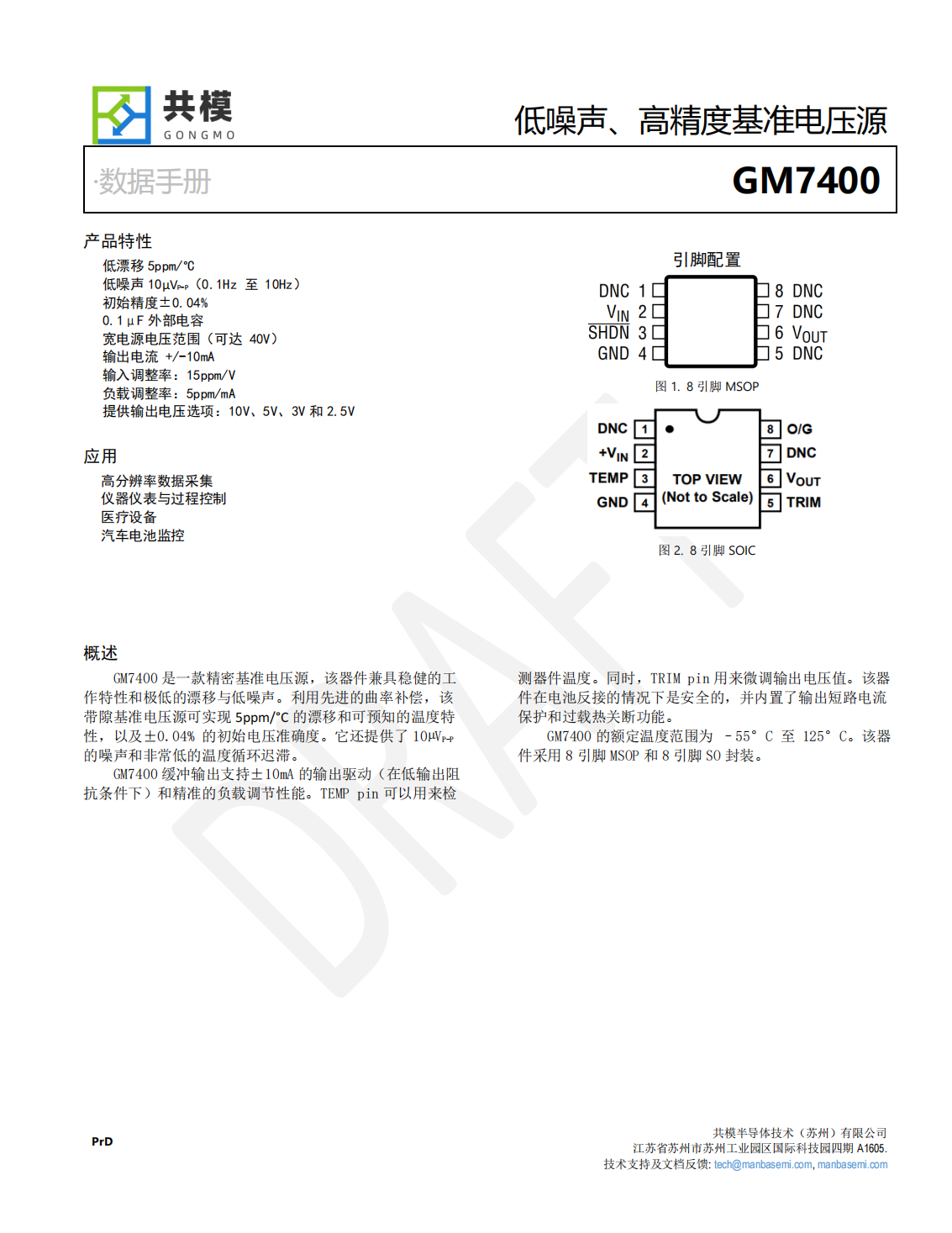 GM7400的額定溫度范圍為–55°C至125°C。該器件采用8引腳MSOP和8引腳SO封裝。