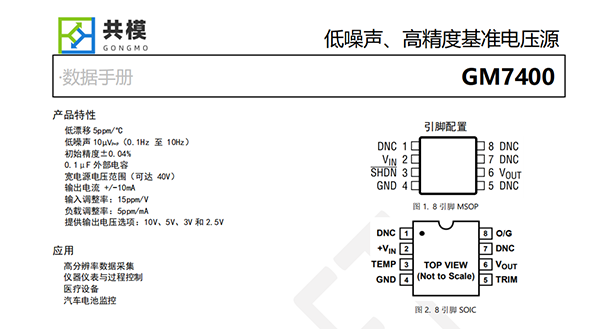 GM7400是一款精密基準(zhǔn)電壓源,該器件兼具穩(wěn)健的工作特性和極低的漂移與低噪聲。利用先進(jìn)的曲率補(bǔ)償,該帶隙基準(zhǔn)電壓源可實(shí)現(xiàn)5ppm/°C的漂移和可預(yù)知的溫度特性,以及±0.04%的初始電壓準(zhǔn)確度。它還提供了10μVP-P的噪聲和非常低的溫度循環(huán)遲滯。