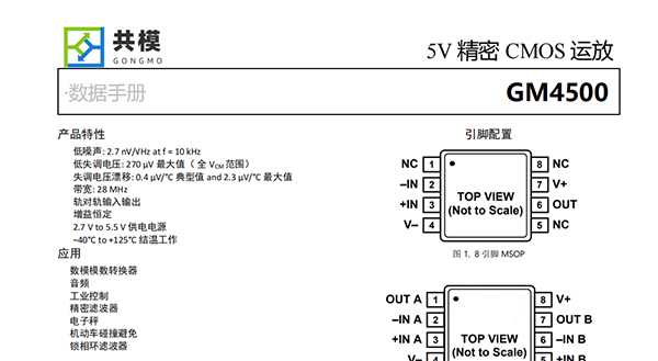 GM4500/GM45002是工業(yè)應用中噪聲最低的精確CMOS放大器,實現(xiàn)了高直流精度和功耗的均衡性。